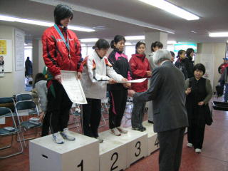 寒いので帰ろうとしましたら、女子ハーフ18歳以上の表彰が始まりました。