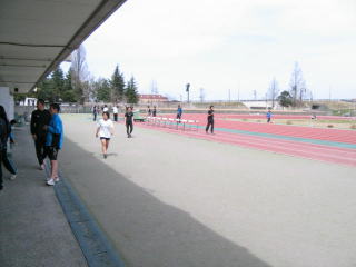 ロードでは、陸上競技場の外周を1周して、大島の信用金庫、大山、北山と走ります。