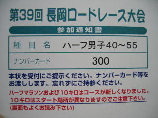 平成22年4月11日 長岡市の「第39回長岡ロードレース大会」のハーフに参加しました。