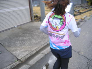 ドラえもん?と並走するの後ろ姿は長岡雑走団南雲さん。