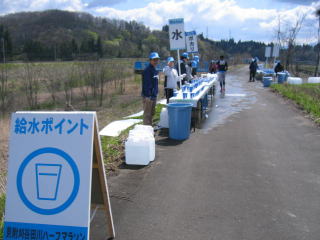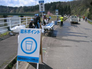 姫ちゅはまだ折返し手前、10キロ手前の第2給水です。