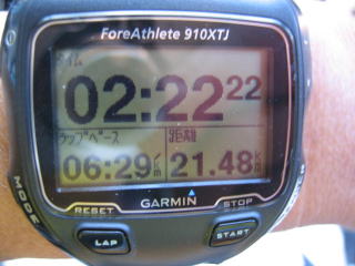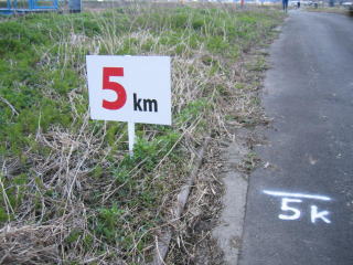 残り5キロ、33分で走って2時間22分位、ハーフのワースト記録更新の予想です。
