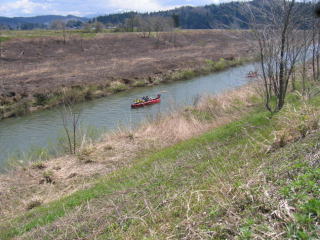 毎年見かける刈谷田川の川下り、「がんばれ〜」と声がかかってきます。