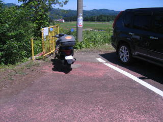 午前9時40分前に上の駐車場につきました、なるべく邪魔にならないスペースにひっそりと駐車、正確には駐輪します。