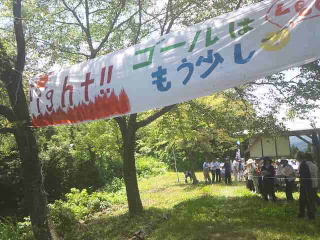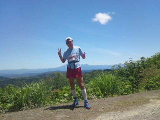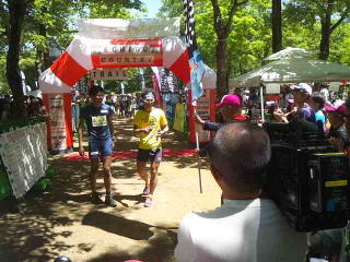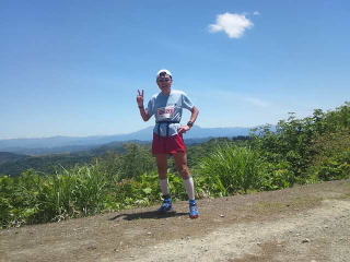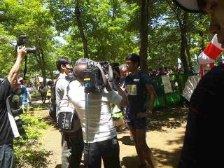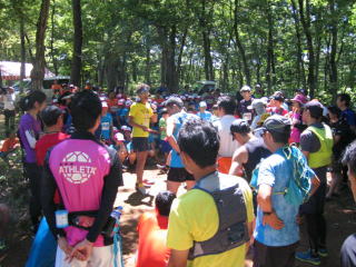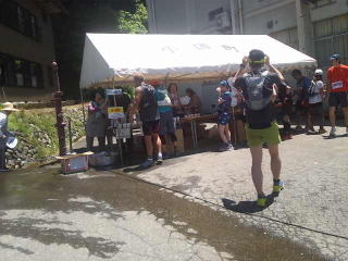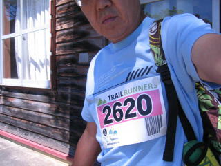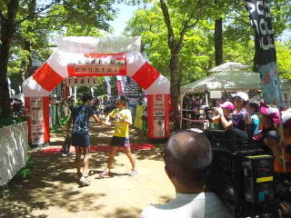 スタート地点で待機しているともう53キロのトップランナーがゴール、なんでも世界的にも有名なトレランランナーだそうです。
