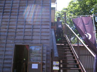 道を挟んだ売店の2階が荷物置き場です、昨年とは違っています。