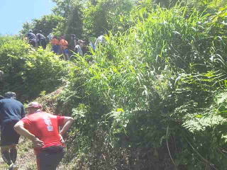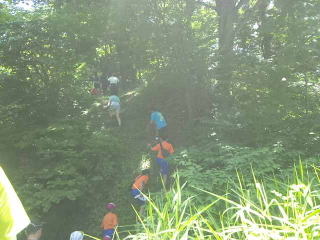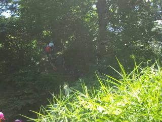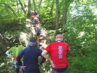 すぐそこにゴールの歓声が聞こえるところまできて、係員さんに「ハイ左折です。」で1.2キロ迂回、その入り口はロープを使わないと登れません。