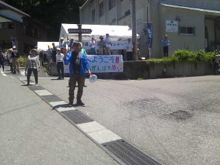 朝は午前8時30分に出発、途中、せせらぎ公園エイドへ向かう53キロランナーと応援する地域住民を多数見かけました。