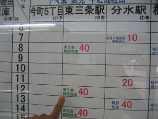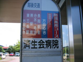 お昼12時40分の東三条行き、済生会病院経由乗ります。