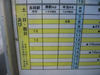 このバス停からは想定内ですが、今日は長岡へ帰るバスはありません。