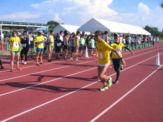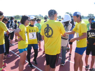 ナンバーカードは9番と10番、各チーム10人でバトンをつなぎます。