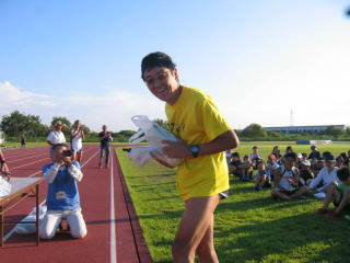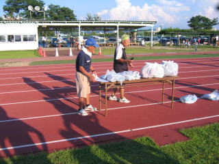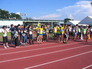 バトンと周回記録用紙を提出して記録発表と閉会式を待ちます。