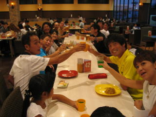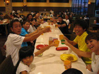 角上タカさんの車に乗せてもらい、打上げ会の「ワールドビュッフェ」です。
