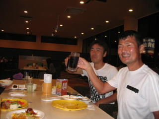 まずは飲み物だけを取ってきて、師匠タカさんの発声で「お疲れ様〜!乾杯〜!!」