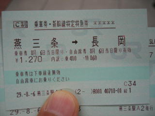 歩いて20分位で燕三条駅へつき、切符を買います。