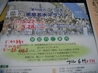 令和5年5月28日、富山県の「第40回カーター記念 黒部名水マラソン大会」のフルマラソン(118回目)に参加しました。