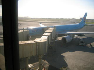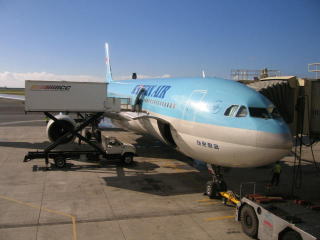 乗ってきた青いボディの大韓航空機です。