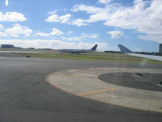 当機の後にも、次に飛び立つ飛行機が来ています。