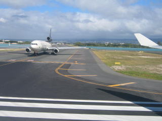 ホノルル発10時50分のフライト、逆算して約5時間前の朝6時に起きました。