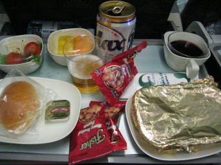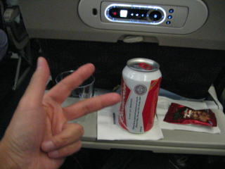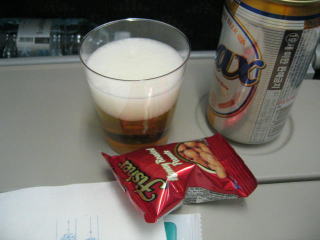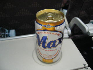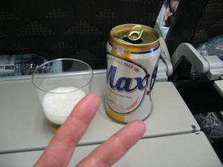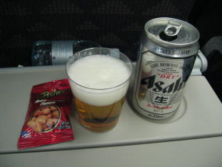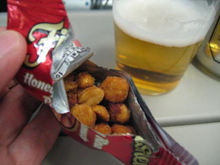 飛行が安定し、ビールとおつまみのナッツをいただきます。