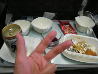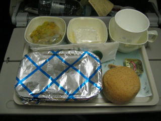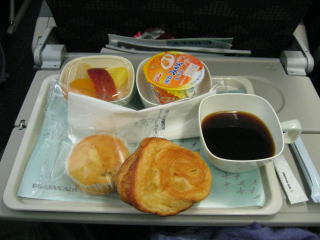 その後、「真夏の方程式」の途中で寝てしまい、CAさんに起こされ朝食です。
