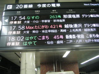 上野駅からは先に来たMaxたにがわ421号で湯沢まで行き、その後に来たMaxとき号に乗り継ぎます。