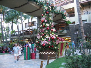 ロイヤルハワイアンセンターの大きなクリスマスツリーです。