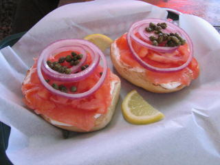 「サーモンベーグル」です、2個で税抜き$10弱だったように思います。