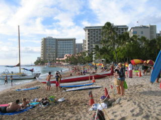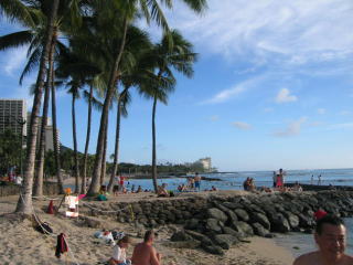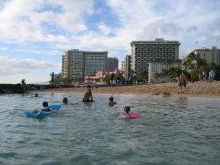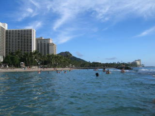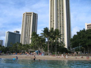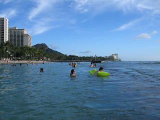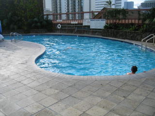 ホテルに戻り、5階のプールでタオルを借りてワイキキビーチへ向かいます。