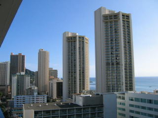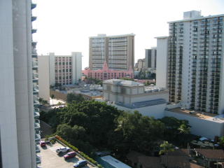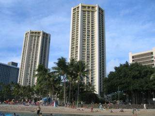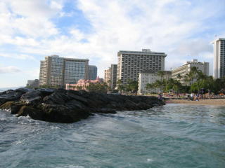 右側にはシェラトンワイキキとピンクパレス(ロイヤルハワイアン)。
