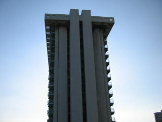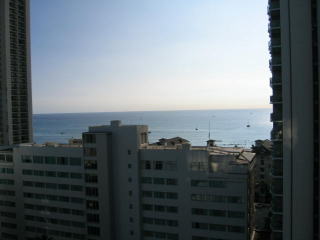 正面わずか左側には海、その左はハイアットリージェンシーのツインタワー。