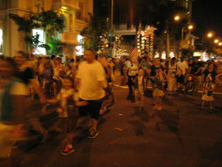夕方、買い出しがてら散歩に出たら、カラカウア大通りでパレードをしていました。