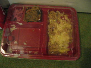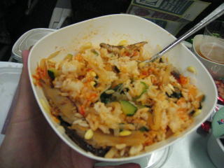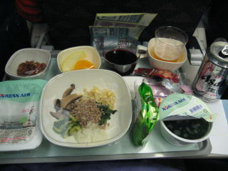 夕食です、今回もビビンバを選びました、他にはビーフ、チキンも選べます。