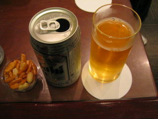 いつものナッツと日本製アサヒスーパードライをいただきます。