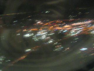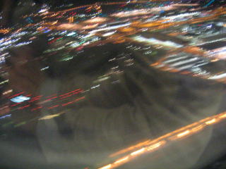定刻、離陸です、成田の街の夜景が小さくなっていきます。