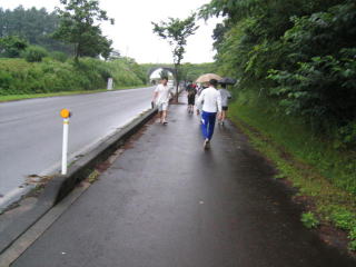 小雨の中を歩きます。