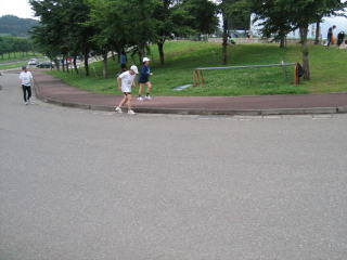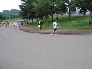 この坂道を登りきってグランドを1周するとゴールです。
