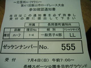 平成22年7月4日 長野県飯山市の「第41回飯山市ロードレース大会〜北信州ハーフマラソン大会」のハーフに参加しました。