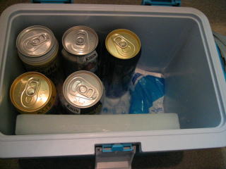 事前情報で冷蔵庫が無いことを知っており、クラーボックスと保冷材、その中におつまみ持参です。