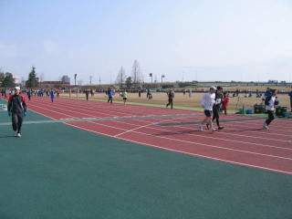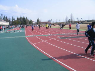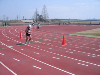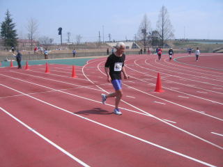 長岡ランナーズ金泉さんが陸上競技場内に入ってきました、おせわになっています長岡ランナーズ志田さんも続きます。