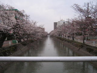 長岡駅まで歩きます、福島江の桜はまだ5分咲きかな!?