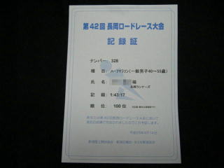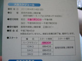 平成25年4月14日 長岡市の「第42回長岡ロードレース大会」のハーフ&懇親会に参加しました。