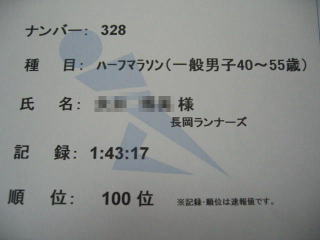 地元長岡で色々仲良しの春風さんも「ハーフ40歳から55歳」の部門で、53歳での入賞はすばらしい。