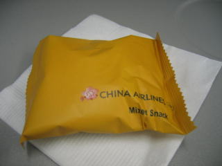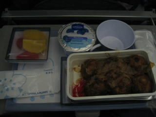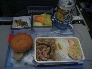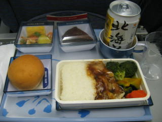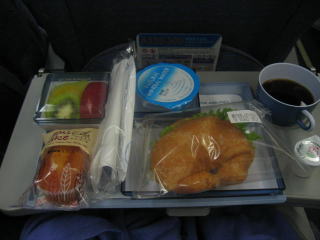 着陸の2時間ほど前に、軽食が出ました、たこ焼きです。
