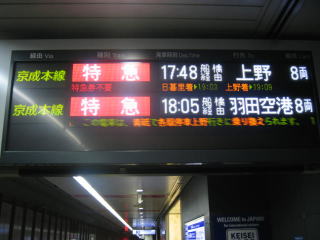 上野駅から歩き京成上野駅へ、特急電車で成田空港へ向かいます。