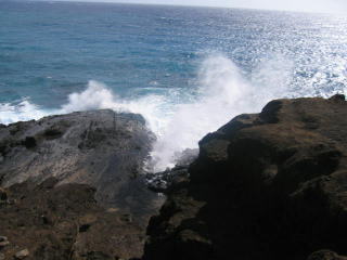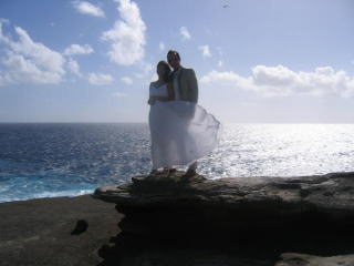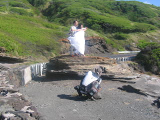 アロアの潮吹き岩付近で結婚?の写真撮影中。