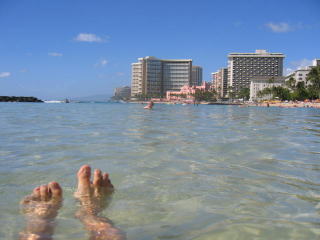ワイキキビーチも最初は冷たいものの、すぐ慣れます。