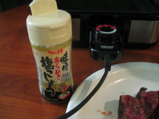 3切れ入って8.24ドル、日本から持参した塩胡椒で味付けしていただきます。