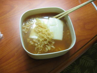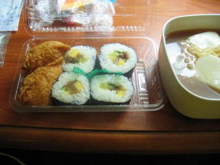 午前2時に起きて、インスタントラーメンとお餅2個、フードパントリーで買ったお寿司で朝食です。