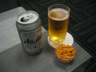 柿の種をおつまみにビールをいただき、搭乗開始時間を待ちます。